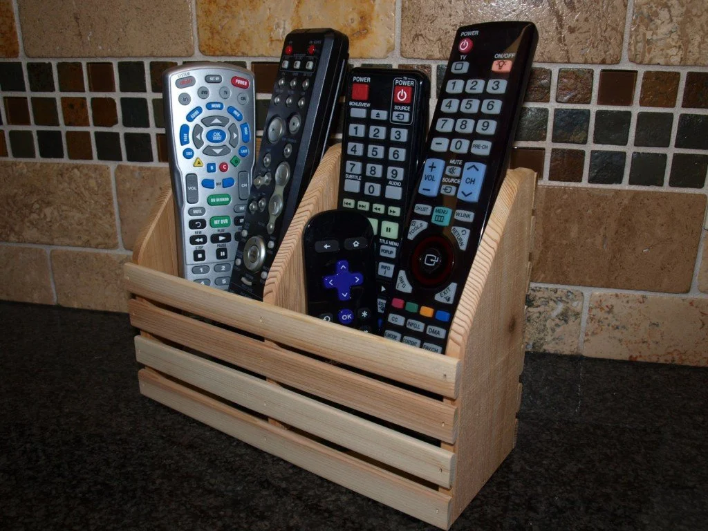 Find the remotes you need by tossing them in a basket, or in another container. If you Velcro the original remote to a wall mounted television, or to one you plan to give away, you will know where it is! This also works great when you are consolidating to one remote.